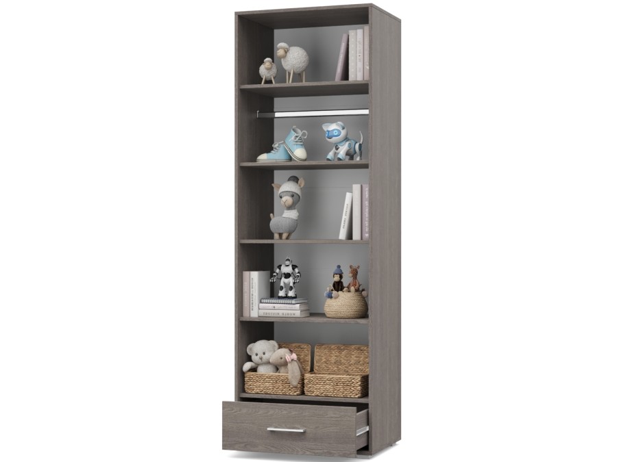 - Шкаф оснащен полками, выдвижным ящиком и металлической стационарной штангой.