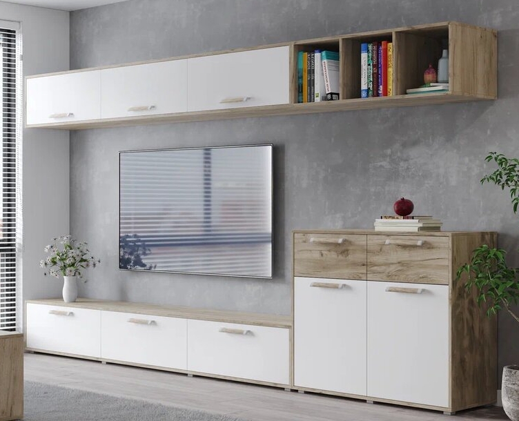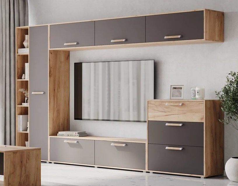 Доступна в нескольких цветовых решениях: Дуб золотой/Графит, Дуб серый/Белый, что позволяет выбрать подходящий вариант под Ваш интерьер.