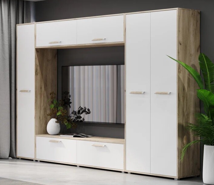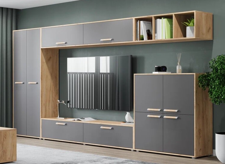 Доступна в нескольких цветовых решениях: Дуб золотой/Графит, Дуб серый/Белый, что позволяет выбрать подходящий вариант под Ваш интерьер.