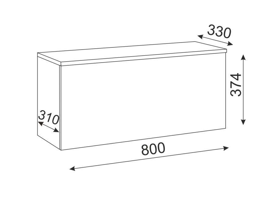 Тумба выполнена в минималистичном стиле, что позволяет ей гармонично вписаться в любой интерьер. Габариты тумбы составляют 800 мм в ширину, 374 мм в высоту и 330 мм в глубину. Благодаря своей лаконичности и функциональности, она может стать отличным решением для организации пространства как дома, так и в офисе.