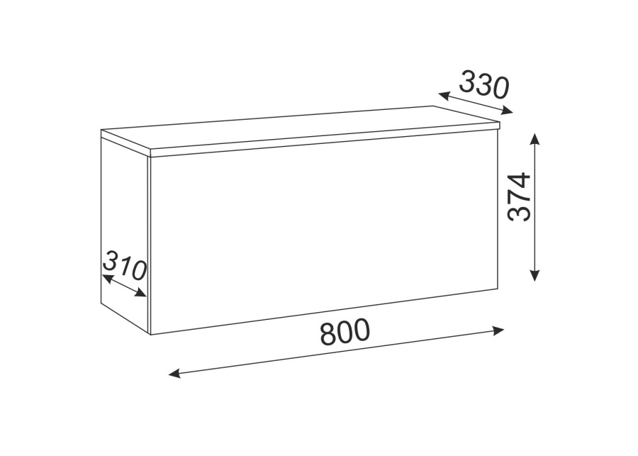 Тумба выполнена в минималистичном стиле, что позволяет ей гармонично вписаться в любой интерьер. Габариты тумбы составляют 800 мм в ширину, 374 мм в высоту и 330 мм в глубину. Благодаря своей лаконичности и функциональности, она может стать отличным решением для организации пространства как дома, так и в офисе.
