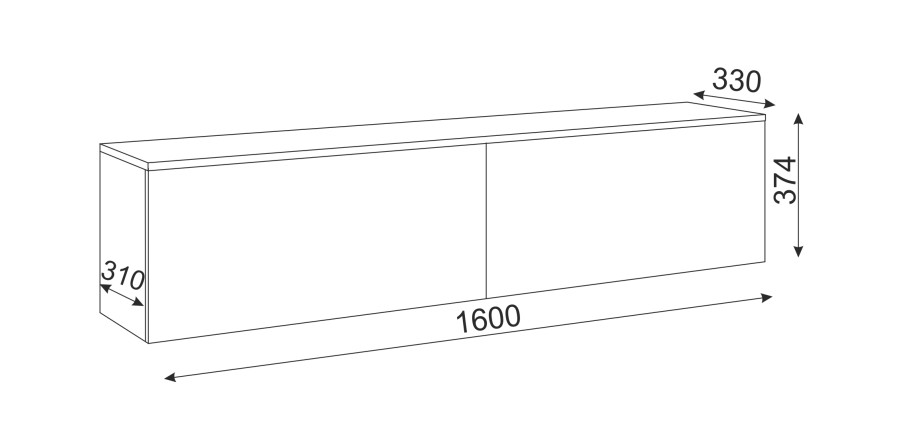 Тумба выполнена в минималистичном стиле, что позволяет ей гармонично вписаться в любой интерьер. Габариты тумбы составляют 1600 мм в ширину, 374 мм в высоту и 330 мм в глубину. Благодаря своей лаконичности и функциональности, она может стать отличным решением для организации пространства как дома, так и в офисе.