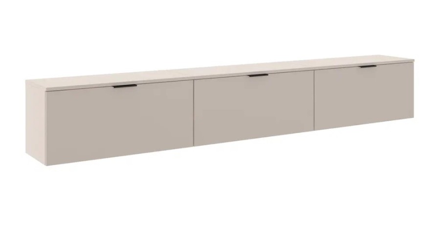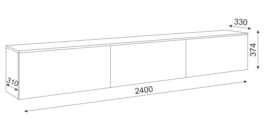 Тумба выполнена в минималистичном стиле, что позволяет ей гармонично вписаться в любой интерьер. Габариты тумбы составляют 2400 мм в ширину, 374 мм в высоту и 330 мм в глубину. Благодаря своей лаконичности и функциональности, она может стать отличным решением для организации пространства как дома, так и в офисе.