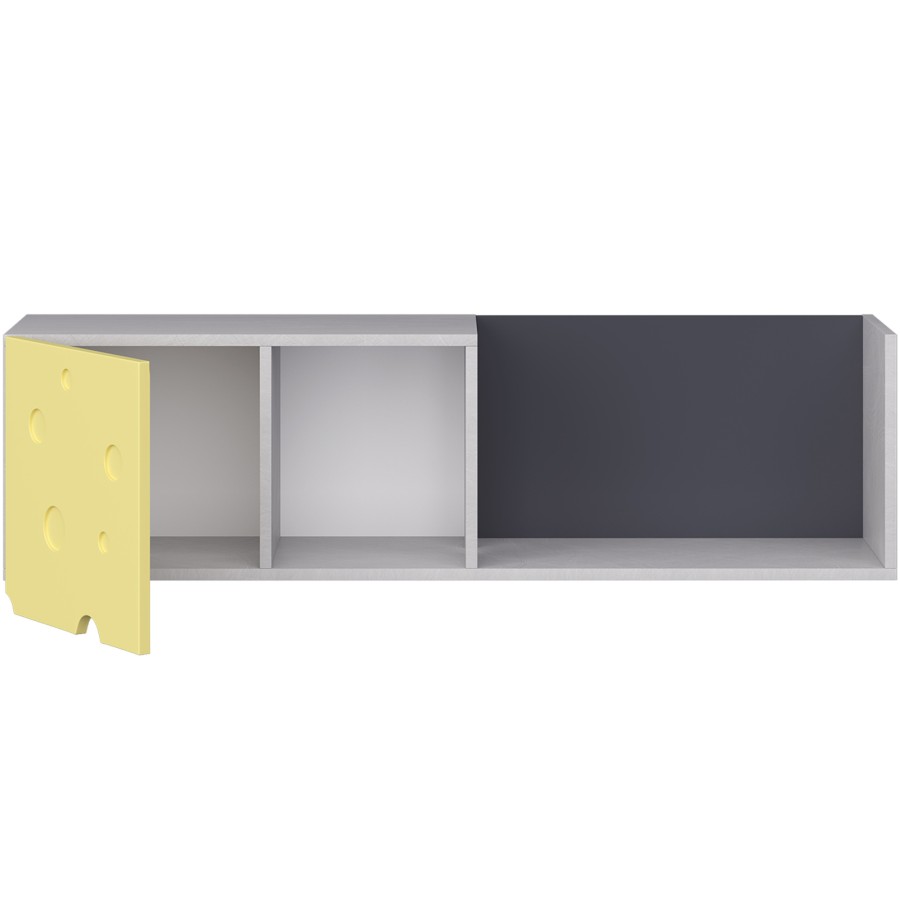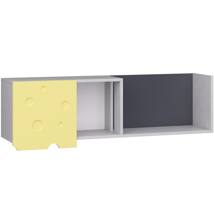 Полка навесная м.7 «Сыр» предназначен для хранения вещей на полках. «Сыр» — яркое и функциональное решение для комнаты вашего ребенка, которое сразу бросается в глаза фирменными желтыми акцентами и характерными «дырочками» сырной фактуры.