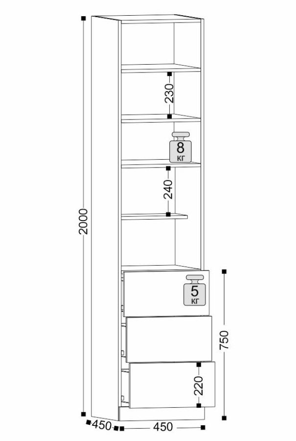 450 х 2000 х 450