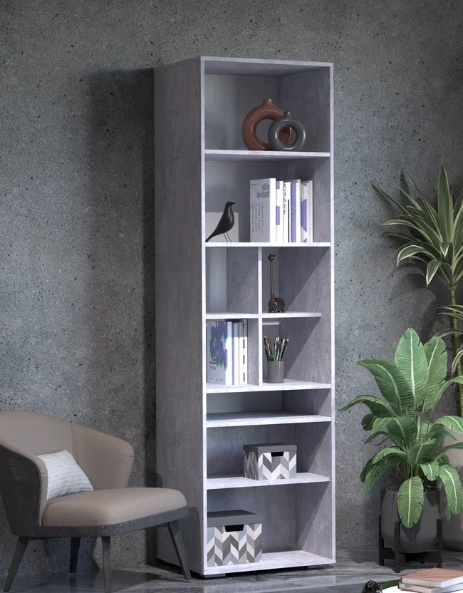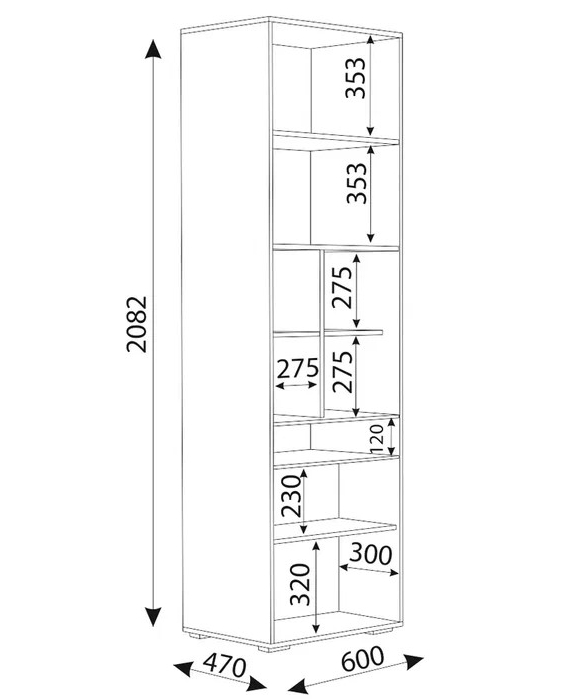 Стеллаж выполнен в минималистичном стиле, что позволяет его гармонично вписать в любой интерьер. Габариты стеллажа составляют 600 мм в ширину, 2082 мм в высоту и 470 мм в глубину. Благодаря своей лаконичности и функциональности, он может стать отличным решением для организации пространства как дома, так и в офисе.
