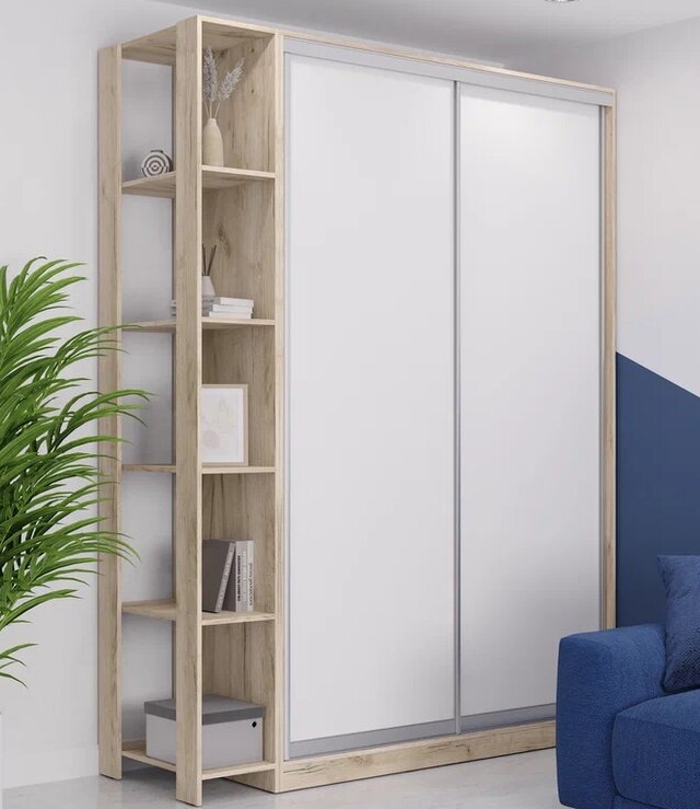 Стеллаж с открытыми полками для мелочей. Украшает боковину шкафа, предоставляя дополнительное место для хранения. Собирается на правую и левую сторону из одного комплекта деталей.