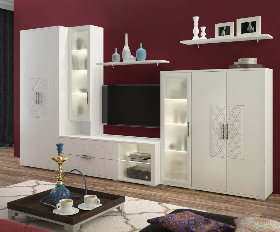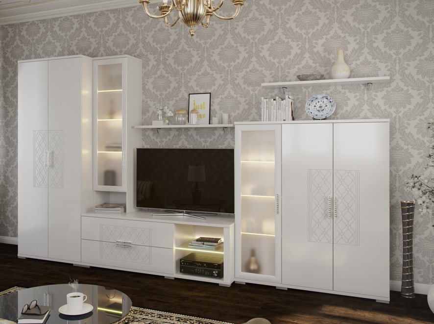 «Тиффани» модульная стенка Белый глянец в гостиную