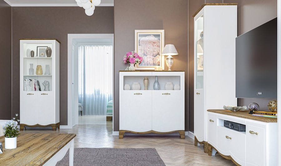 Широкий выбор модулей поможет оформить вам как спальню, так и гостиную. Чистый белый цвет в сочетании с благородной древесной текстурой мебели Тиффани идеально подойдет для интерьера квартиры либо загородного дома создавая гармоничную и уютную атмосферу.
