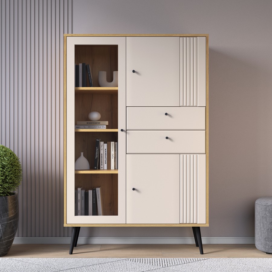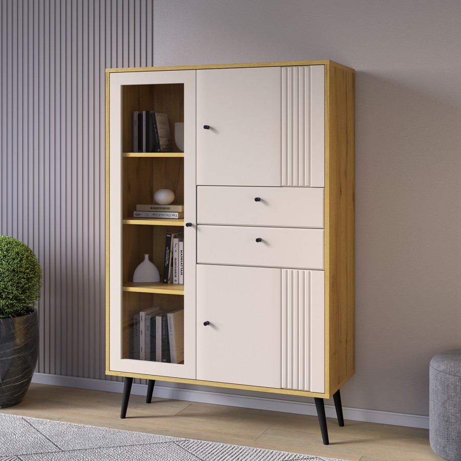 «Вега Саксония» Шкаф низкий (1 стеклодверь) Миндаль