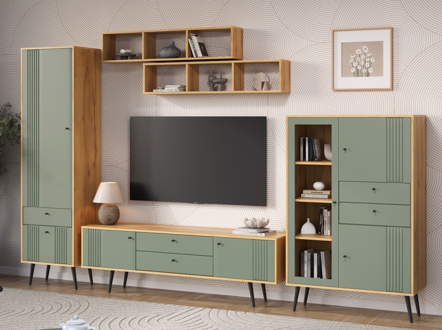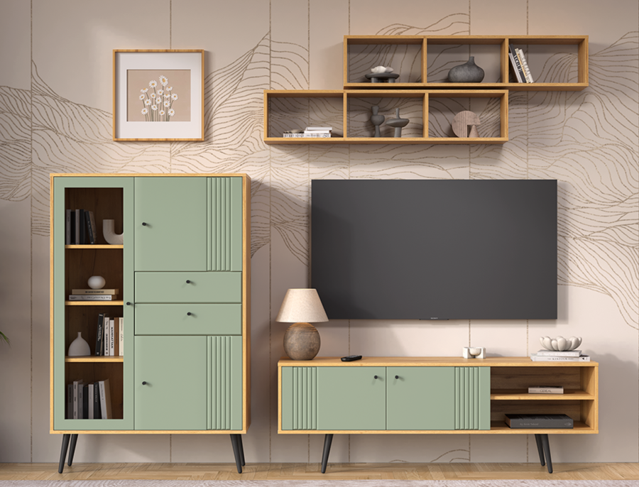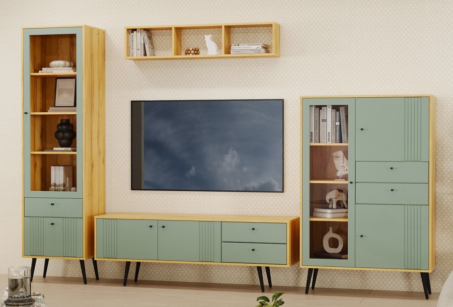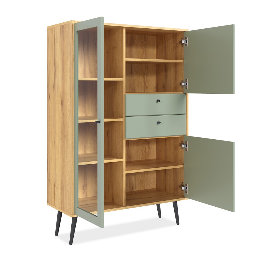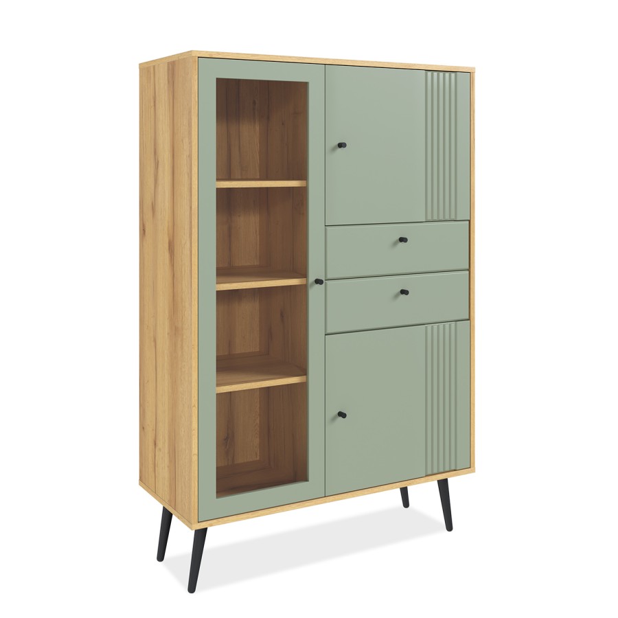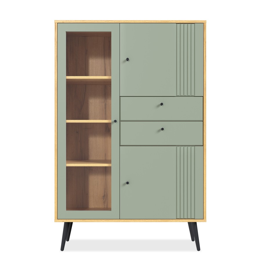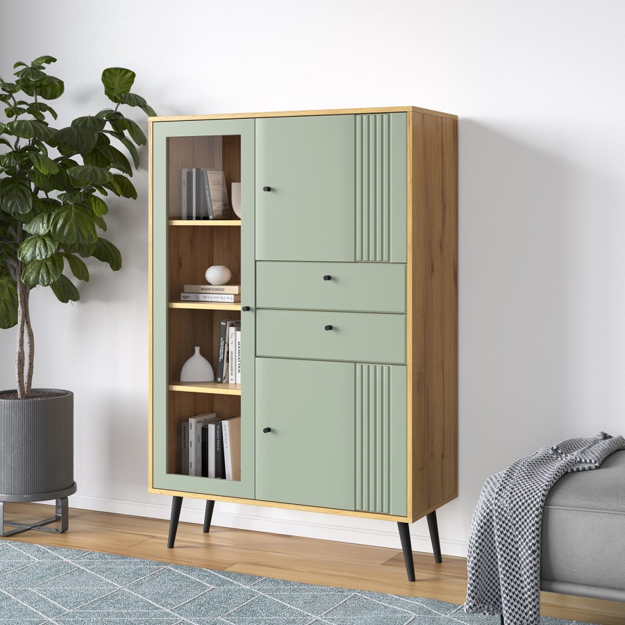 «Вега Саксония» Шкаф низкий (1 стеклодверь) Серо-зелёный