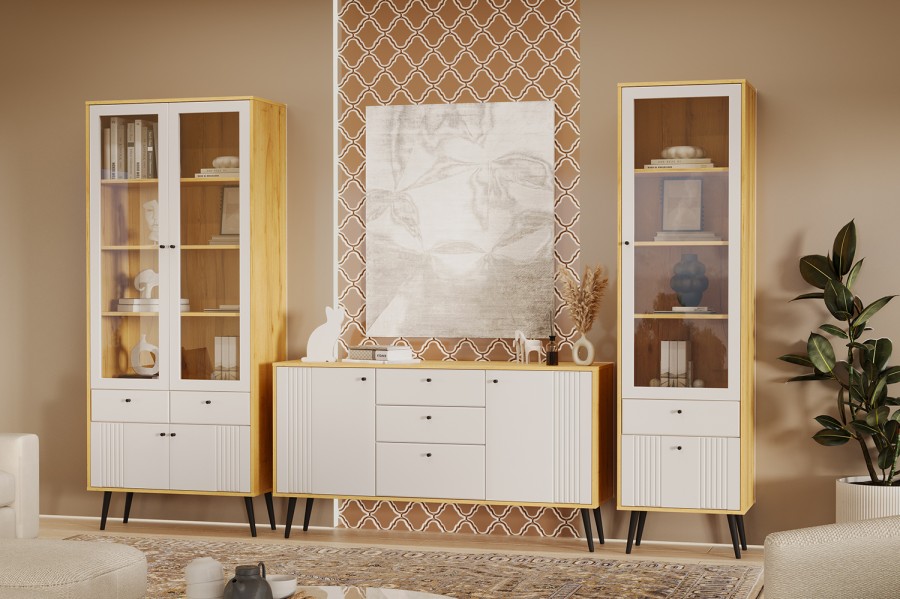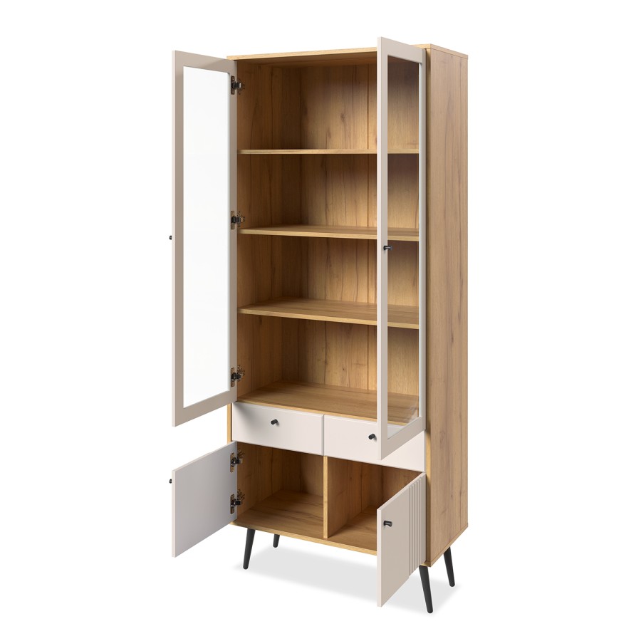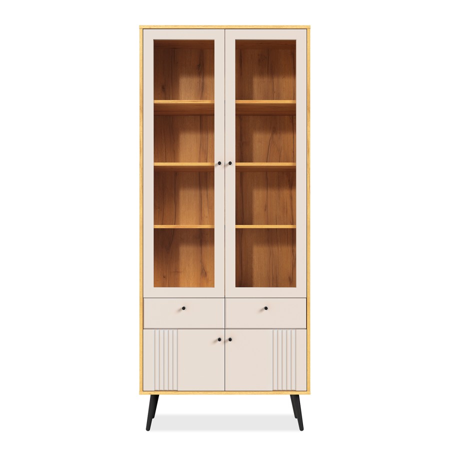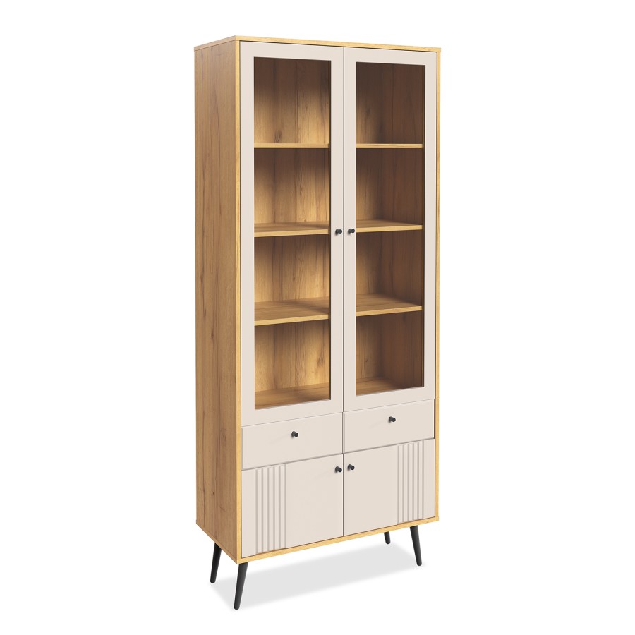 «Вега Саксония» Шкаф-витрина двухдверная Миндаль