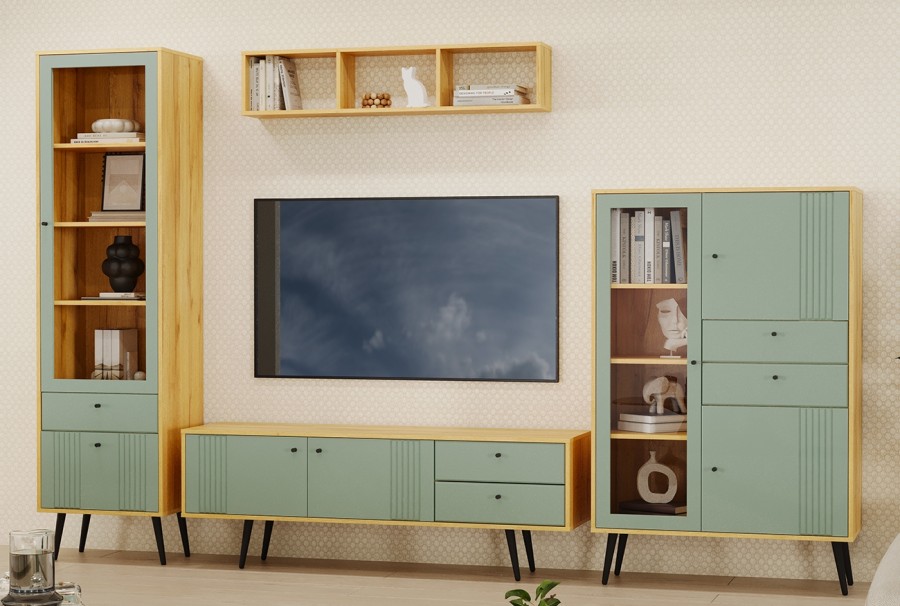 «Вега Саксония» Шкаф-витрина Серо-зелёный