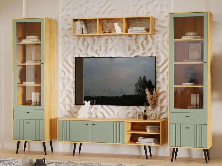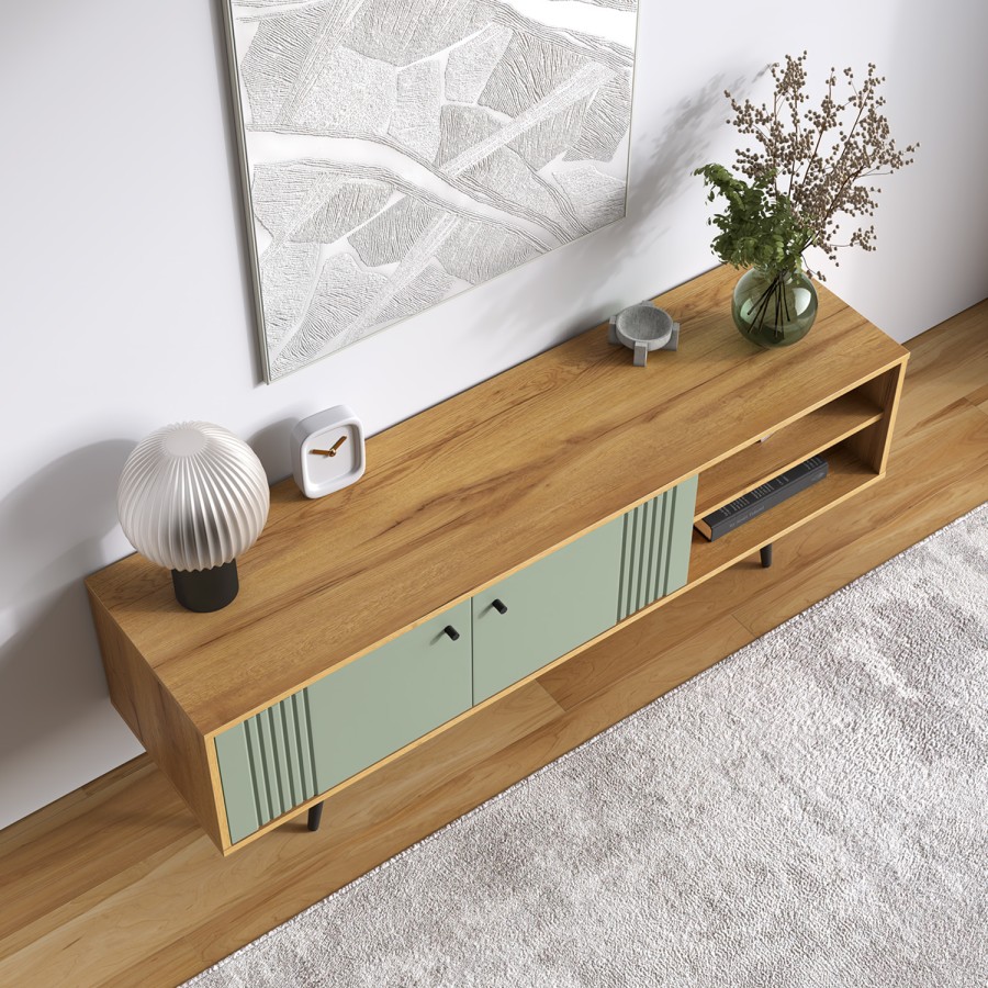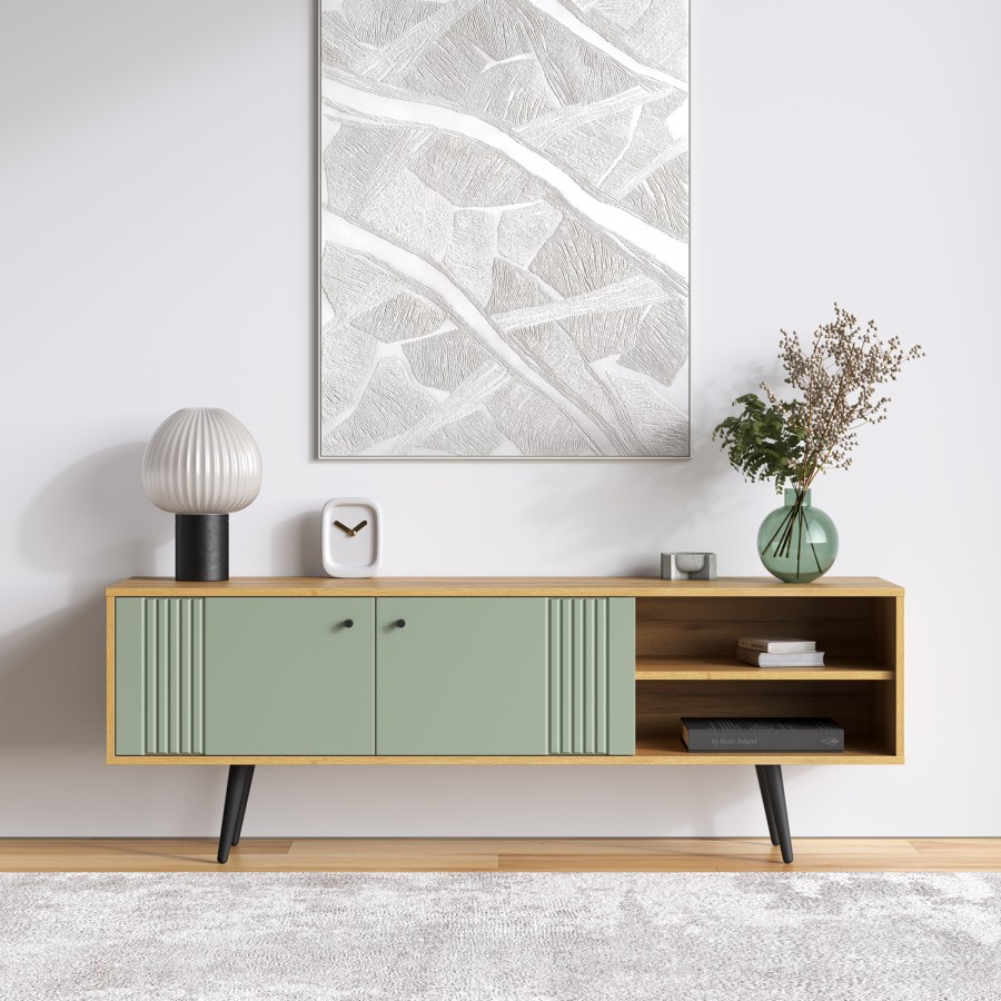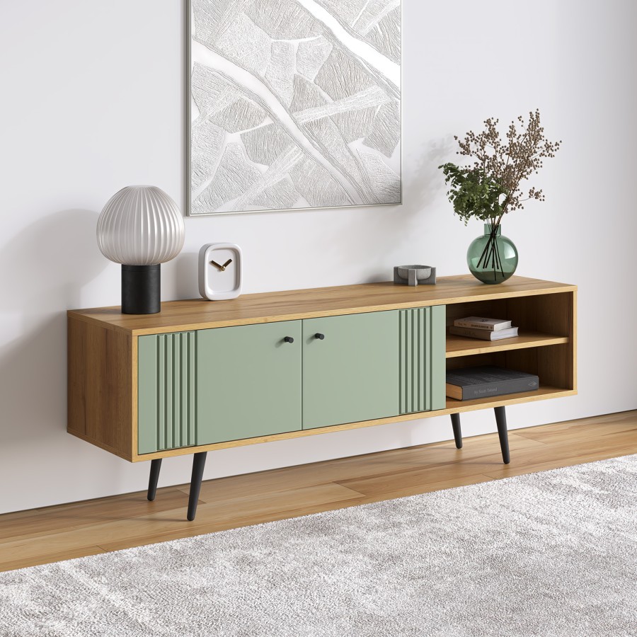 «Вега Саксония» Тумба под ТВ 1500 с нишей Серо-зелёный на ножках
