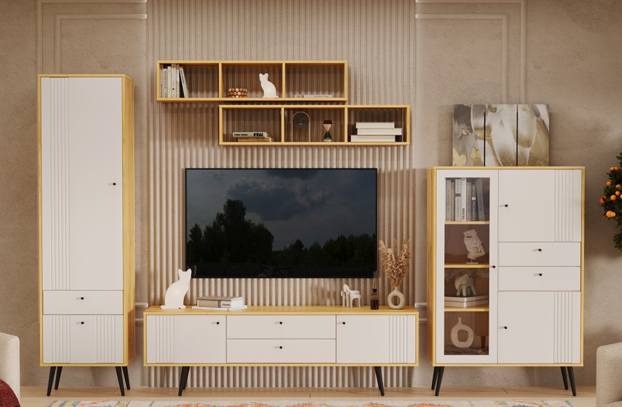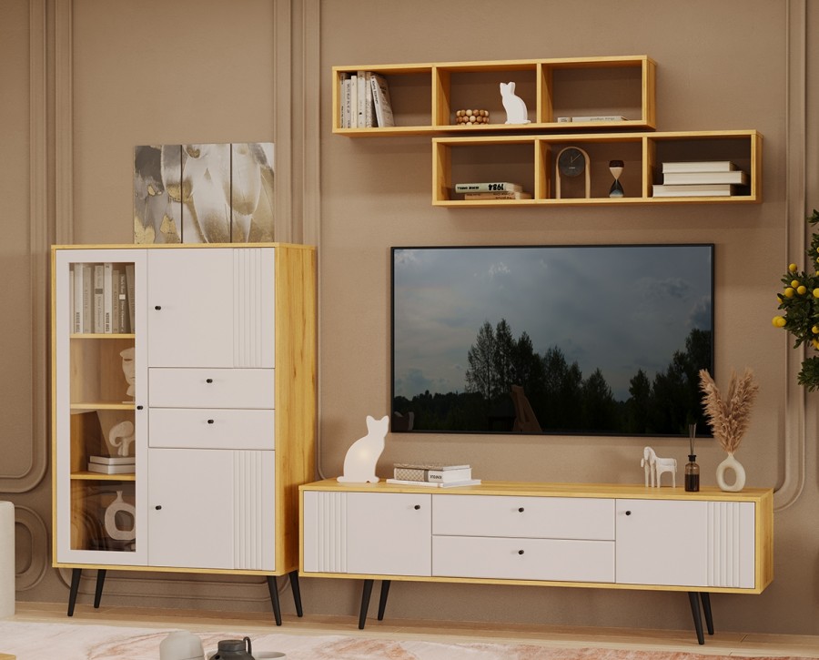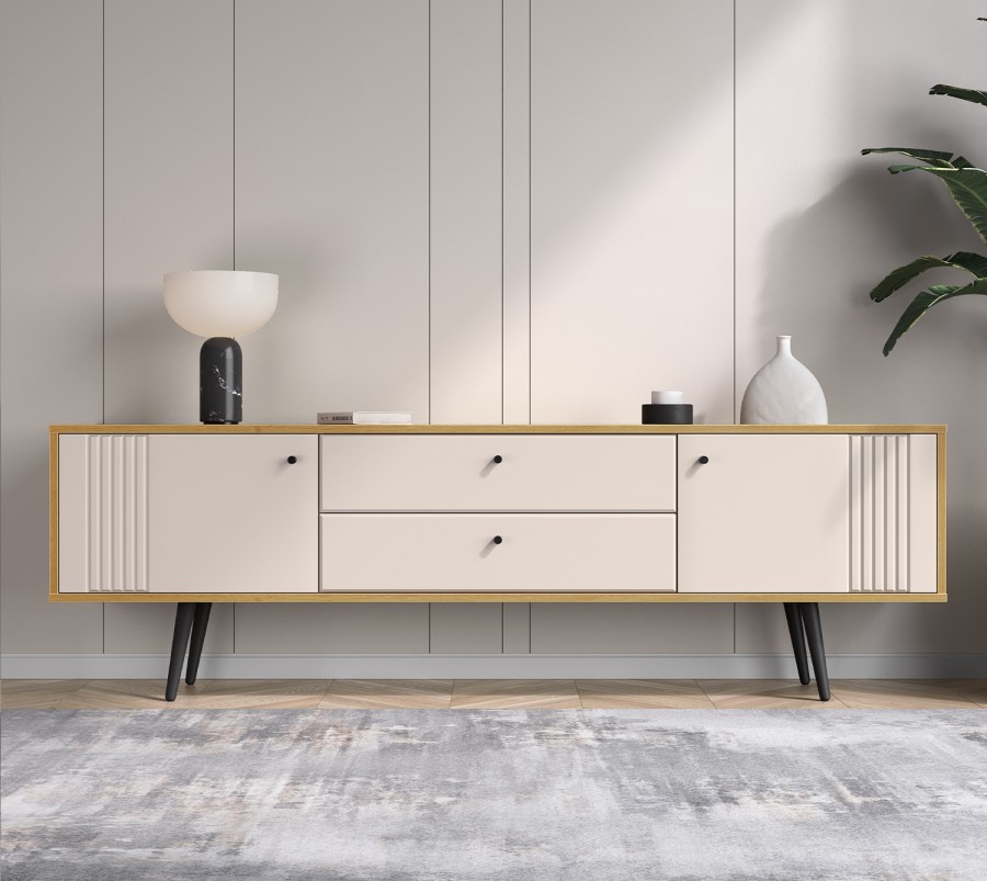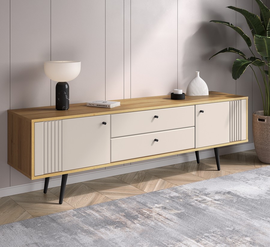 «Вега Саксония» Тумба под ТВ 1700 с ящиками Миндаль на ножках