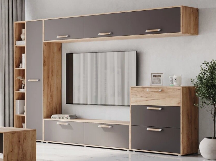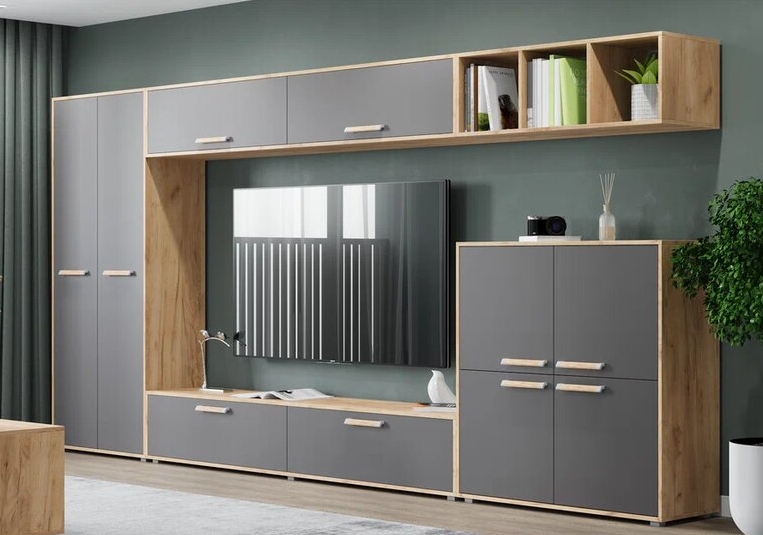 Доступна в нескольких цветовых решениях: Ясень Анкор темный/Ясень Анкор светлый, Дуб серый/Белый, что позволяет выбрать подходящий вариант под Ваш интерьер.