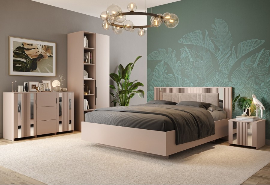 Отличительной чертой коллекции «Харди» являются вставки из МДФ облицованные плёнкой ПВХ, которые прикреплены на фасадах тумбы, комода, шкафа и лицевой части кровати. Фасады и видимые части изделий обработаны кромочной лентой ПВХ толщиной 2 мм с радиусным закруглением и не имеют острых углов. На фасадной части изделий зеркальные вставки.