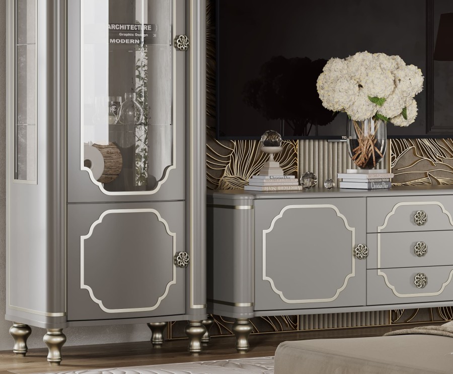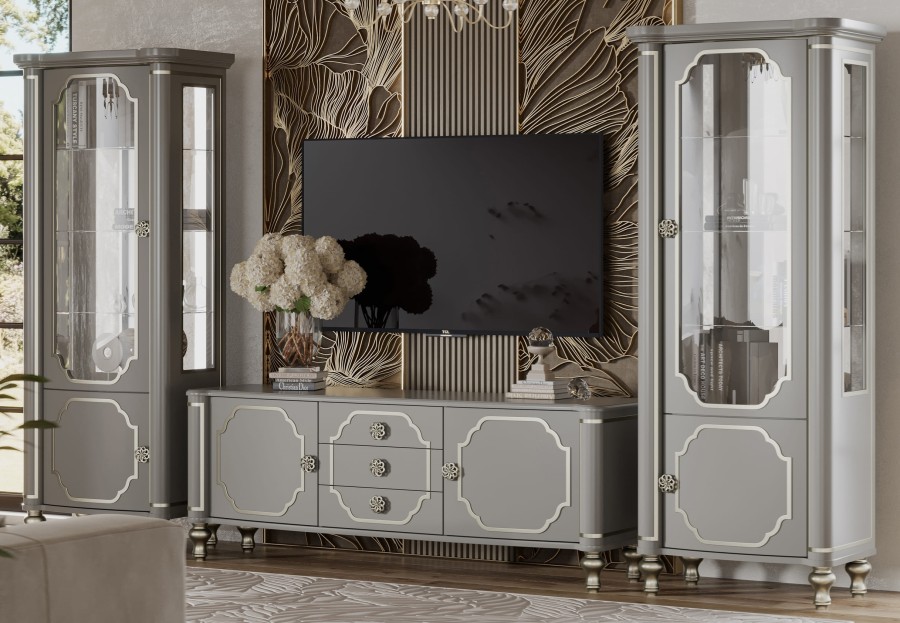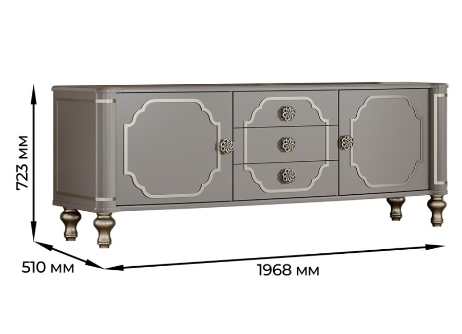 ТВ-тумба Мария не только станет украшением вашей гостиной, но и станет функционально удобной для хранения предметов. Цвет "патина серая" поддерживает теплую атмосферу гостиной.