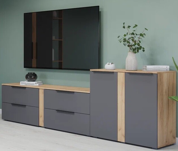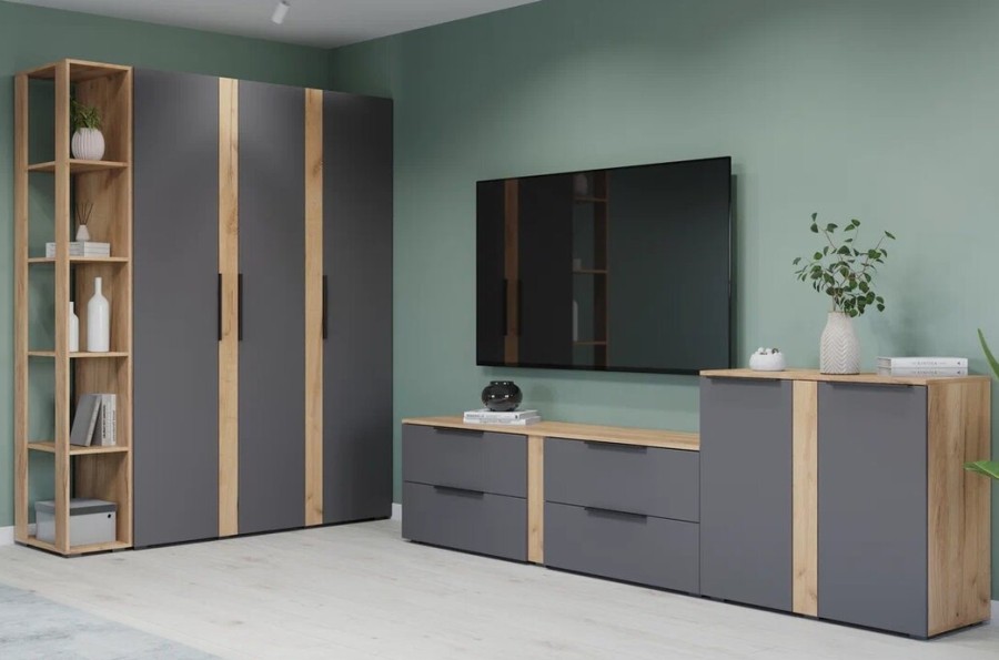 - Цвет на выбор: Дуб золотой/Графит, Дуб серый/Белый.