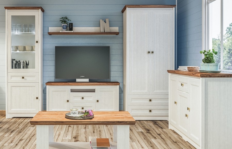 Отличительной чертой стиля «лёгкого кантри» является применение в дизайне не более трёх основных цветов. В качестве основного выступает белый со структурой под дерево, а в противовес ему для создание контраста идёт тёмный цвет с текстурой дуба. Такая универсальная цветовая гамма мебели легко впишется в большинство интерьеров и будет идеальным решением для владельцев любой квартиры или дома.