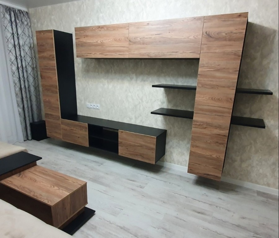 Гостиная стенка «Альда» Черный /Дуб веллингтон