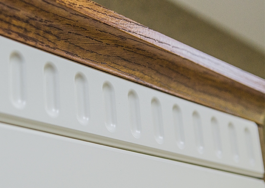 - Фасад МДФ в цвете Крем / Дуб Кантри или Крем Крашенное дерево + пленка ПВХ.