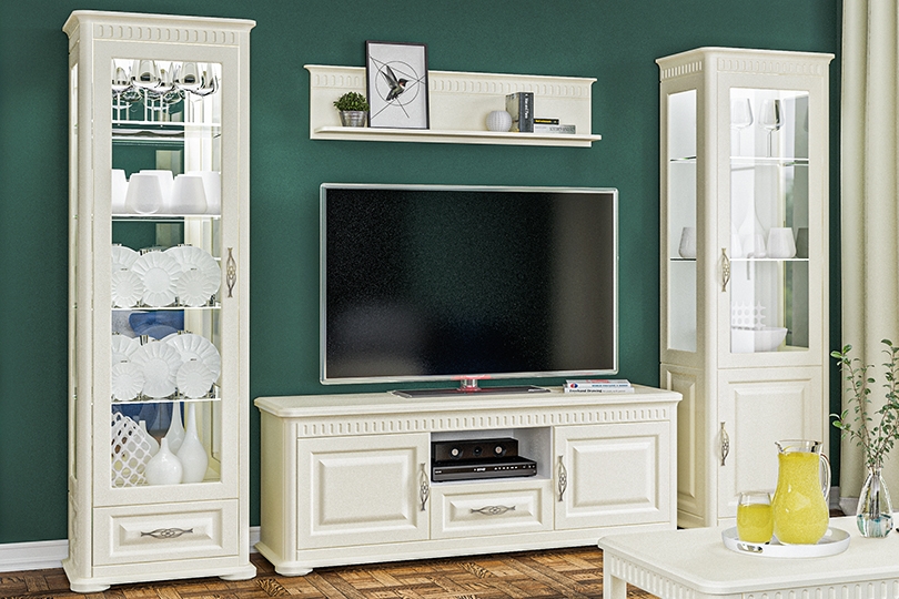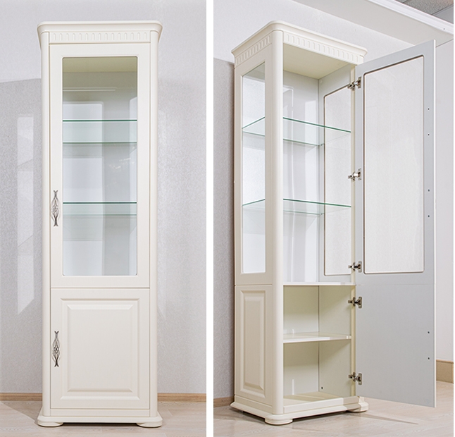 - Шкаф-витрина снабжена доводчиками для плавного закрывания.