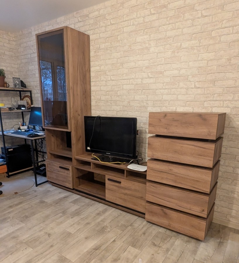 Высокий шкаф для посуды удобен своей функциональностью и эргономичностью конструкции. За тонированным стеклянным фасадом - 2 регулируемые по высоте бесцветные стеклянные полки. Витрина открывается за боковой свес. На открытой полке разместите фотографии или элементы декора, а за глухим откидным фасадом спрячьте документы и ценные вещи от посторонних глаз. Регулируемые опоры шкафа позволят компенсировать незначительные неровности пола. К шкафу можно докупить модуль ADELE 87 Подсветка. Сборка лево/правосторонняя