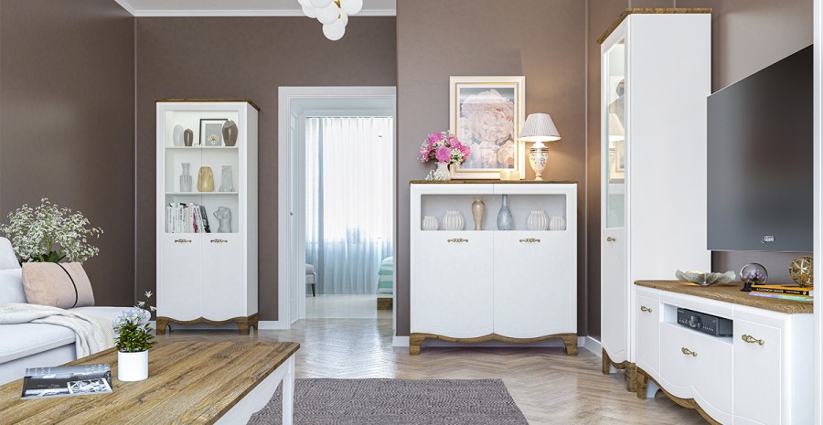 Широкий выбор модулей поможет оформить вам как спальню, так и гостиную. Чистый белый цвет в сочетании с благородной древесной текстурой мебели Тиффани идеально подойдет для интерьера квартиры либо загородного дома создавая гармоничную и уютную атмосферу.