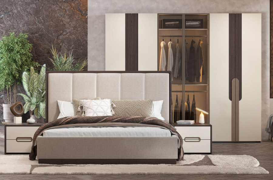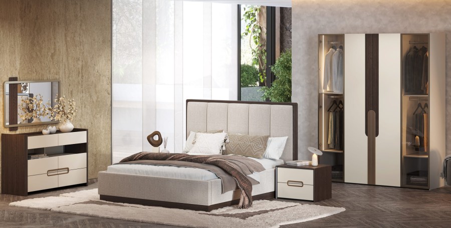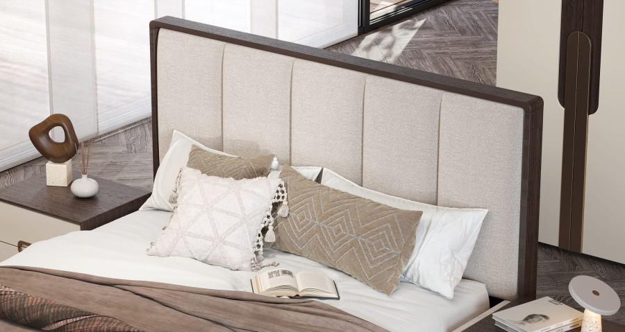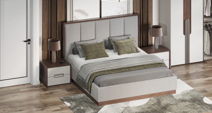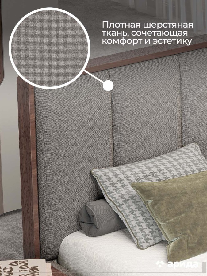 Кровать с ортопедическим основанием "Диана" — это тихая поэма в ткани и дереве. Уютное мягкое изголовье с вертикальной прострочкой и декором под дерево добавляют натуральности и тепла, сохраняя при этом современную эстетику. Изголовье создаёт ощущение комфорта и изысканности, идеально дополняя интерьер в нейтральных и природных тонах.