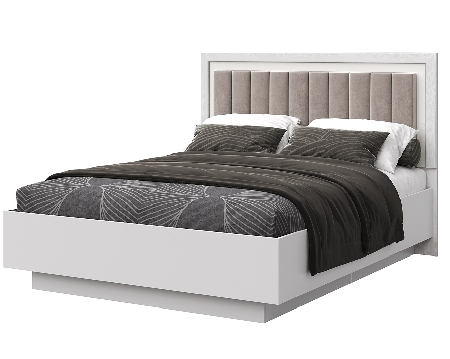 Кровать с дополнительными внутренними продольными опорами, которые образуют цокольную коробку. Основанием кровати являются щиты ДСП. Обвязка кровати (царги и щит ножной) состоят из щитов ДСП, облицованные кромкой ПВХ. Щит головной прямоугольной формы из ЛДСП и мягкого элемента.