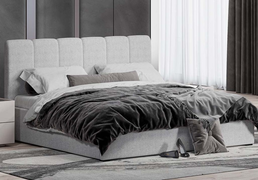 «Леонардо» Кровать двуспальная (Шенил букле серый) с ортопедическим основанием (малое изголовье)