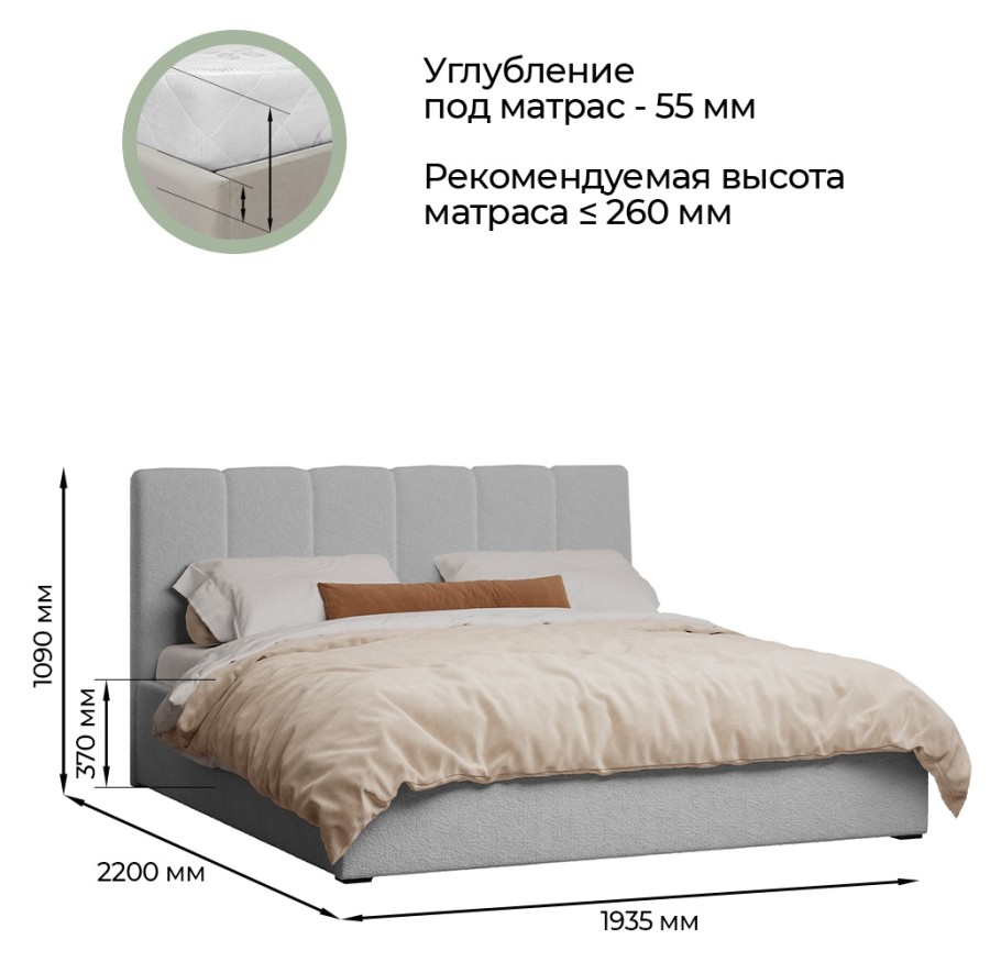 «Леонардо» Кровать двуспальная (Шенил букле серый) с подъемным мех-мом (малое изголовье)
