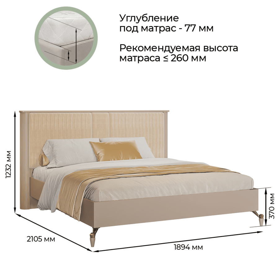 - Углубление под матрас 77 мм.