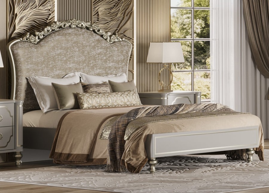 Кровать "Мария" - это воплощение стиля неоклассика в современной интерпретации. Изголовье декорировано сдержанным цветочным орнаментом. Обивка жаккард из натуральных волокон прекрасно подчеркивает стиль и элегантность коллекции.