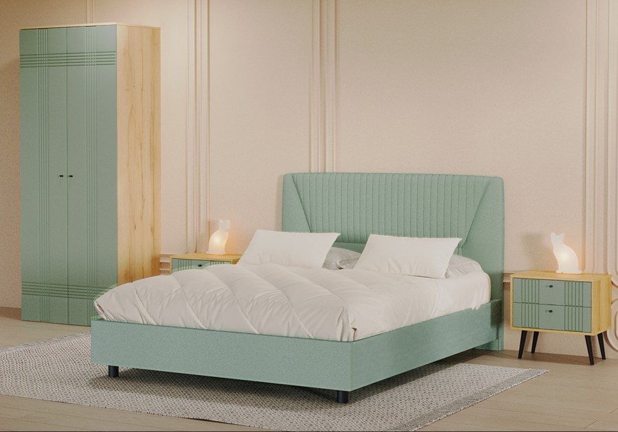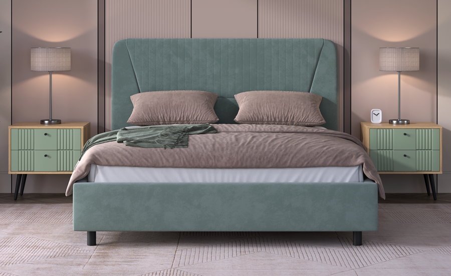 Материалы изготовления кровати – ЛДСП, наполнение ППУ и тканевая обивка. Микровелюр Catania – материал высокой прочности с обработкой от влаги по технологии Wet Proof, благодаря которой устойчив к загрязнениям и легко очищается. Прочность ткани подтверждает тест на истирание, согласно которому поверхность выдерживает боле 101000 циклов.