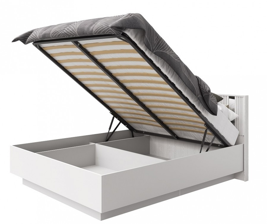 Кровать с дополнительными внутренними продольными опорами, которые образуют цокольную коробку. Основанием кровати являются щиты ДСП. Обвязка кровати (царги и щит ножной) состоят из щитов ДСП, облицованные кромкой ПВХ. Щит головной прямоугольной формы из ЛДСП и мягкого элемента.