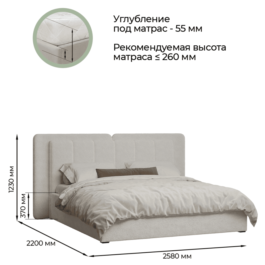 - Рекомендуемая высота матраса до 260 мм.