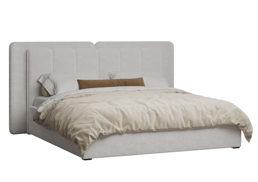 «Леонардо» Кровать двуспальная (Шенил букле серый) с подъемным мех-мом (малое и большое изголовье)