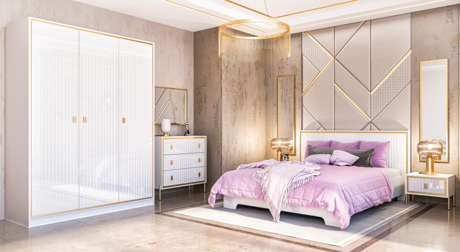 Серия ЛЮКСОР – мебель для спальни и гостиной в классическом стиле фабрики Неман. Люксор – это игра света и тени в гранях фасада; безупречное сочетание глянца, зеркальных отражений и приглушённого чарующего сияния металла.