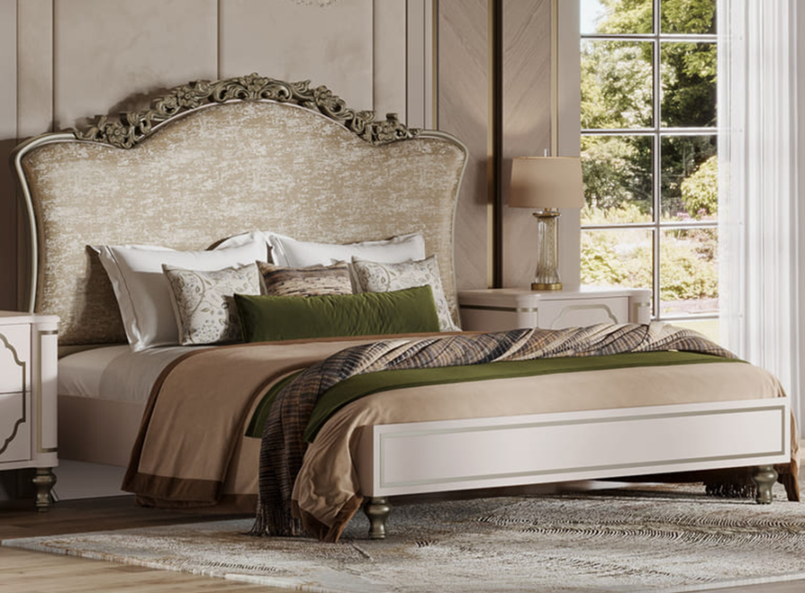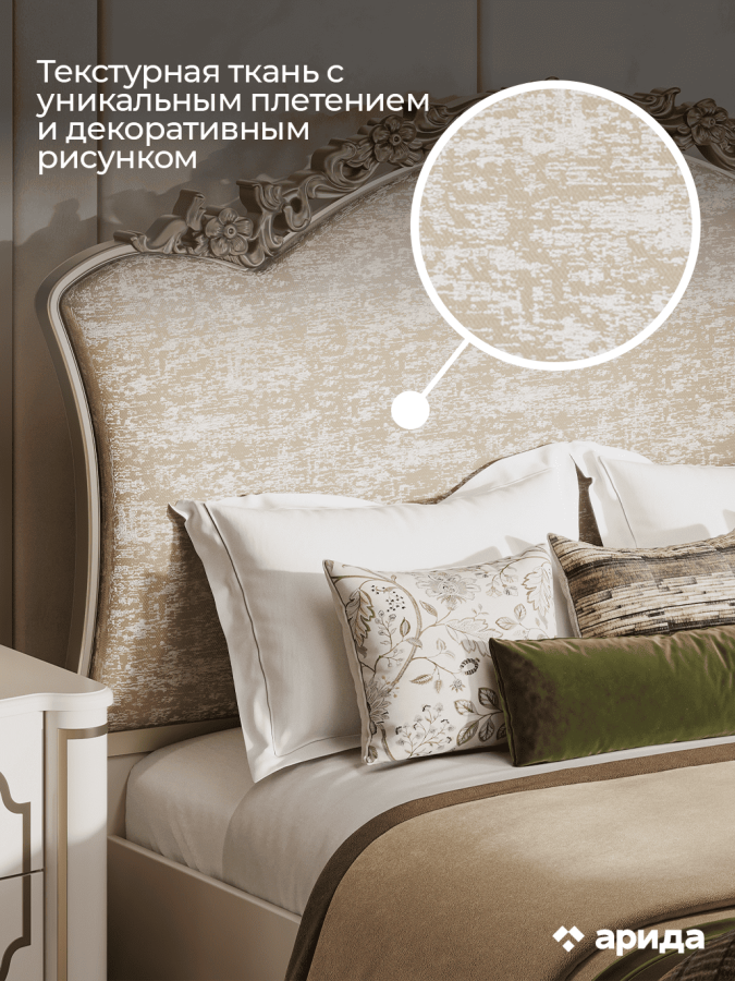 Кровать "Мария" - это воплощение стиля неоклассика в современной интерпретации. Изголовье декорировано сдержанным цветочным орнаментом. Обивка жаккард из натуральных волокон прекрасно подчеркивает стиль и элегантность коллекции.