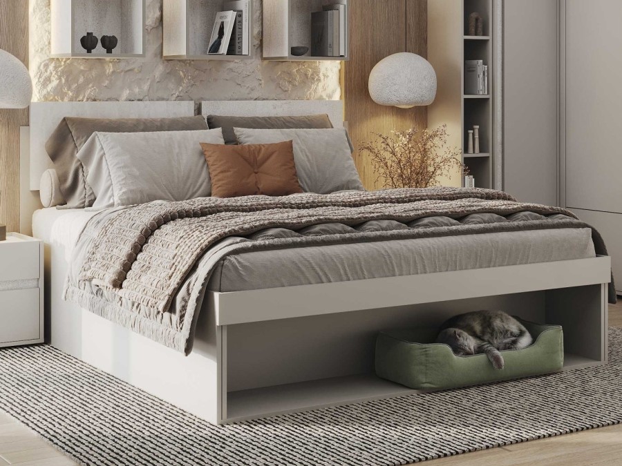 Изножье с нишей служит удобным местом для хранения. В ней может уютно устроиться даже домашний питомец.