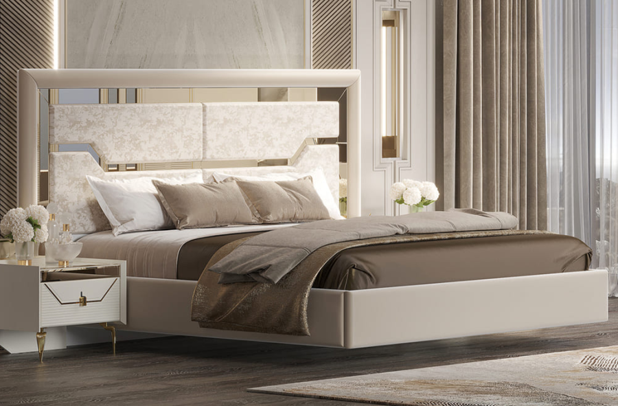 Кровать "Стефани" с мягким изголовьем, декорированным зеркальными вставками - яркий элемент вашей спальни.