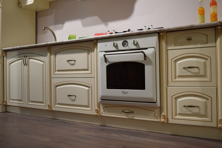 - Декоративные элементы, фасады, накладки покрыты золотой патиной и матовым лаком