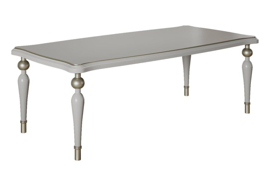 Компания из 8 человек будет чувствовать себя комфортно за обеденным столом Мария.Эффектный серо-платиновый цвет гарнитура, мягкая обивка отлично сочетается с любым интерьером. А декор в цвете холодное золото придаёт особую изюминку этому гарнитуру.