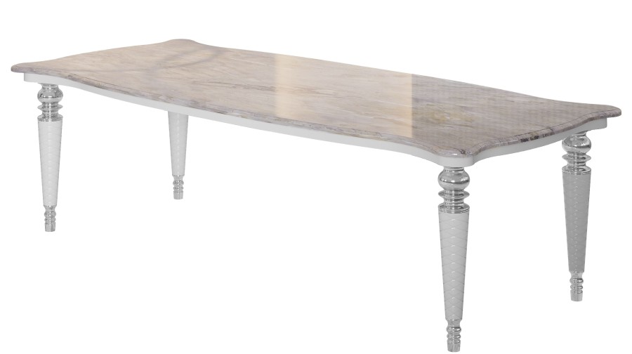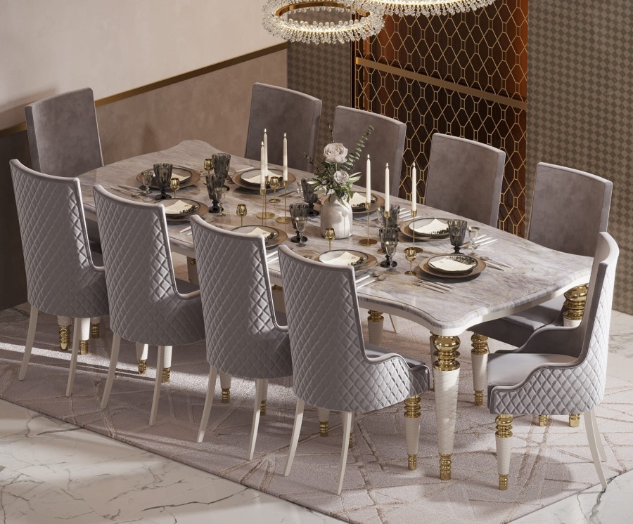 Компания из 10 человек будет чувствовать себя комфортно за обеденным столом Прадо.Прадо - это актуальный стиль Art-Deco, который получил второе дыхание за счет новых технологий и материалов. Ножки коллекции декорированы золотыми и серебрянными элементами, придающими коллекции шарм и изысканность. Столешница имитирует натуральный камень, чито придает особый шарм интерьеру.