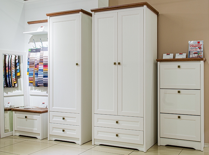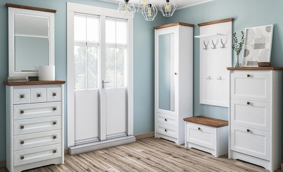 Отличительной чертой стиля «лёгкого кантри» является применение в дизайне не более трёх основных цветов. В качестве основного выступает белый со структурой под дерево, а в противовес ему для создание контраста идёт тёмный цвет с текстурой дуба. Такая универсальная цветовая гамма мебели легко впишется в большинство интерьеров и будет идеальным решением для владельцев любой квартиры или дома.