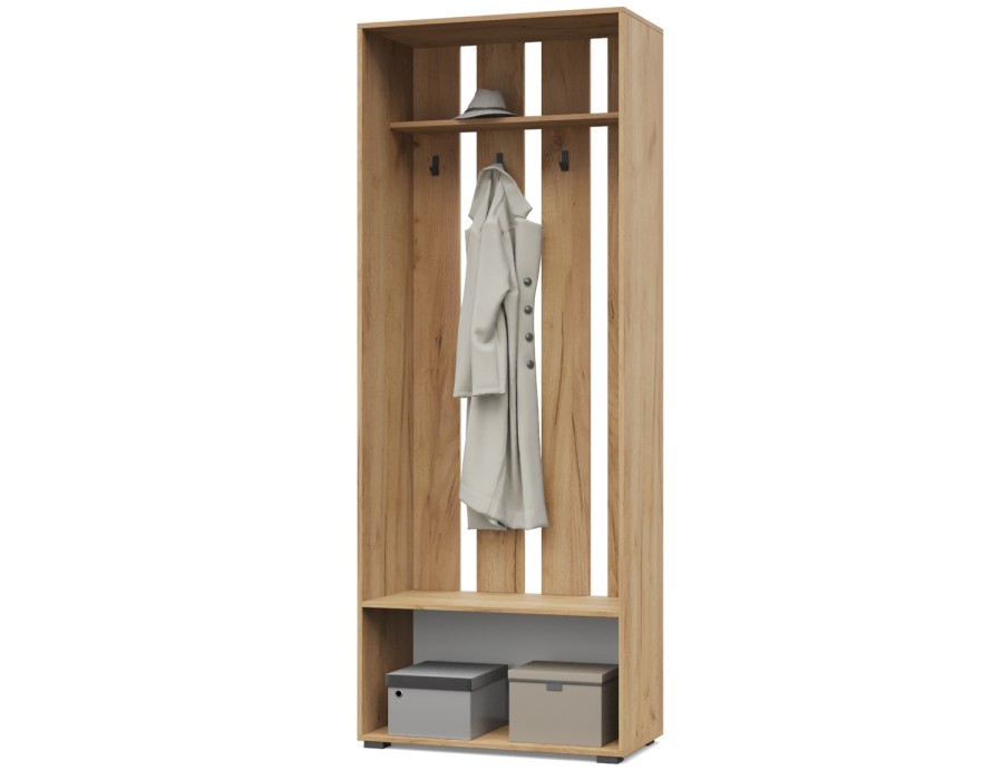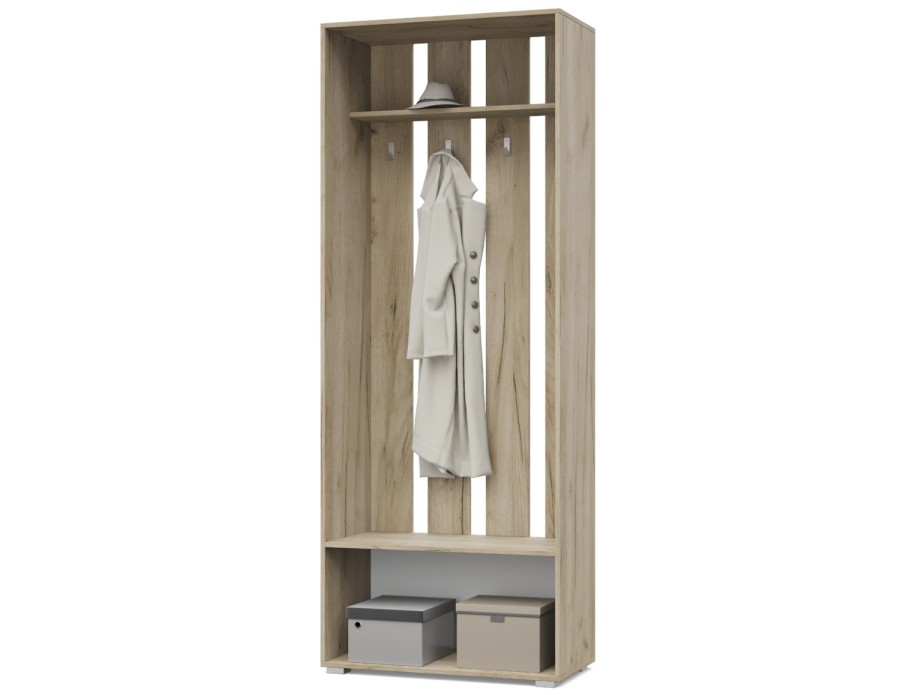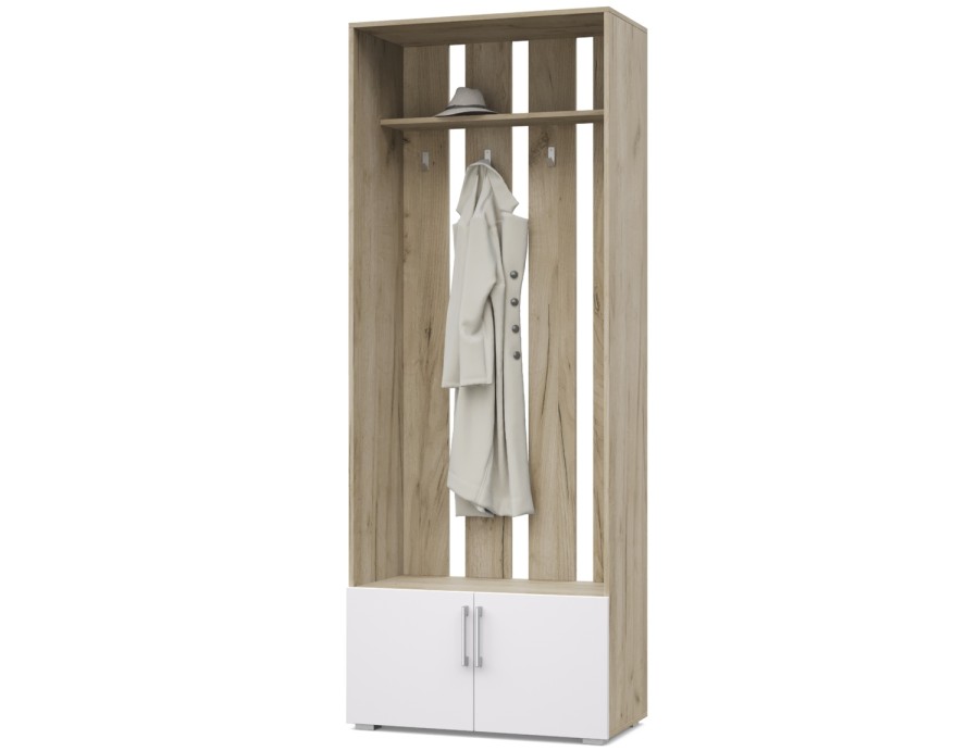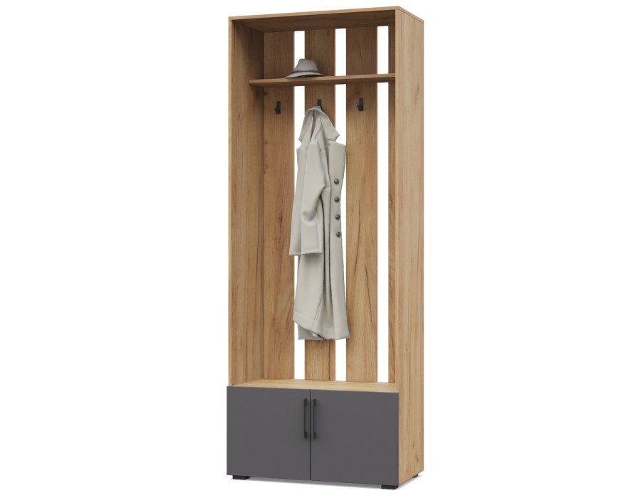 Карина К73 от Модериум — это вешалка с тумбой. Практичный и удобный элемент мебели для квартиры, которым будете пользоваться на протяжении многих лет. Вешалка имеет антресоль, крючки и снизу тумбу, в которых можно разместить одежду и обувь. Доступна в разных цветах: Дуб золотой/Графит, Ясень Анкор темный/Ясень Анкор светлый, Кашемир, Дуб серый/Белый, что позволяет выбрать подходящий вариант под Ваш интерьер.