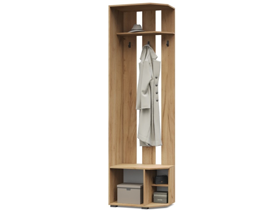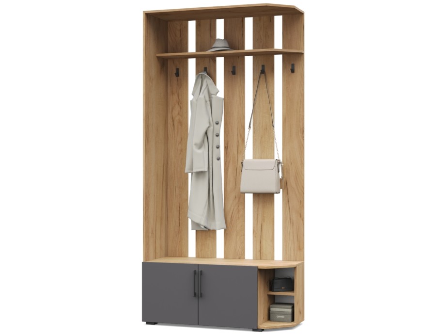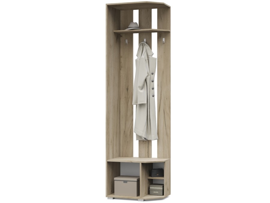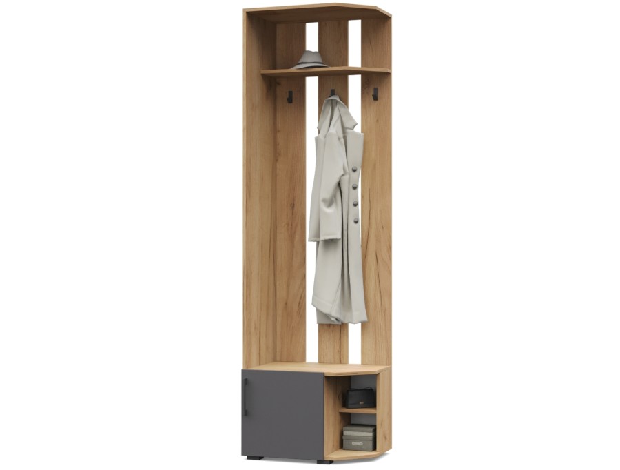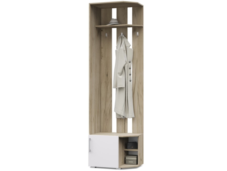 Карина К82/К83 от Модериум — это вешалка угловая с тумбой. Практичный и удобный элемент мебели для квартиры, которым будете пользоваться на протяжении многих лет. Вешалка имеет антресоль, крючки и снизу тумбу, в которых можно разместить одежду и обувь. Доступна в разных цветах: Дуб золотой/Графит, Ясень Анкор темный/Ясень Анкор светлый, Кашемир, Дуб серый/Белый, что позволяет выбрать подходящий вариант под Ваш интерьер.