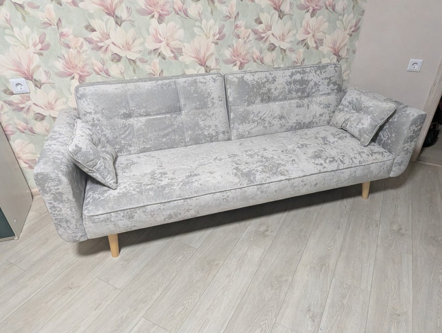 Диван с великолепной декоративной двойной отстрочкой в скандинавском стиле. Механизм раскладки книжка, можно привести спинку в три положения для большего комфорта во время отдыха или сна. Две великолепные подушки, которые входят в комплект придадут дивану особый вид.